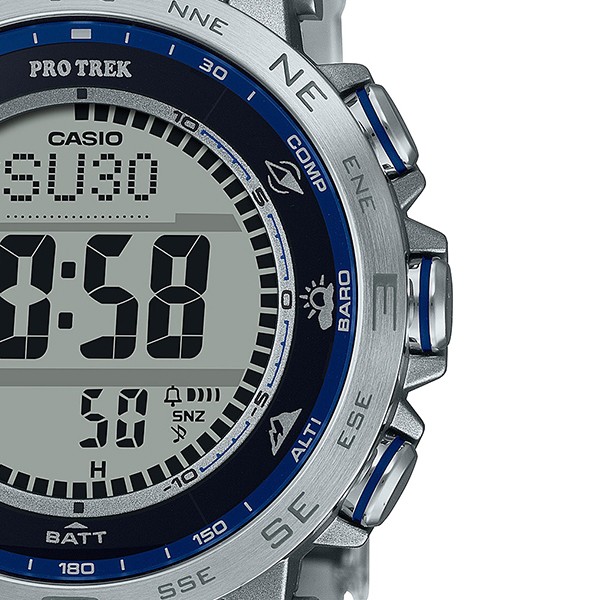 「PRO TREK」のクライマーラインから、視認性を追求したコンパクトなPRW-30にサファイアガラス、チタンバンドを採用したモデルです。