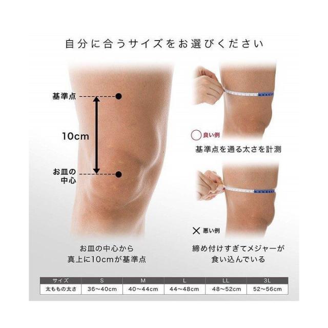 | サイズ (太ももの太さ) | S(36〜40cm)371901 M(40〜44cm)371902 L(44〜48cm)371903 LL(48〜52cm)371904 3L(52〜56cm)371905 |