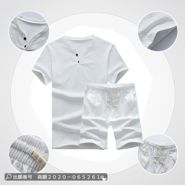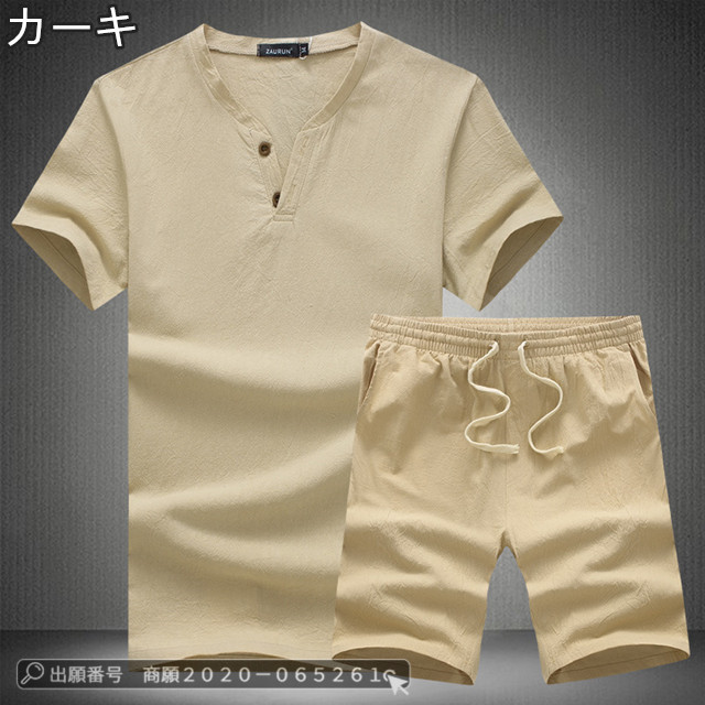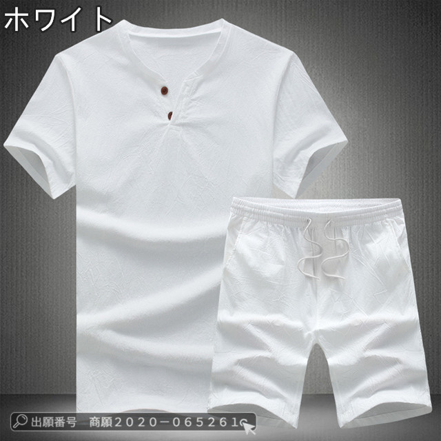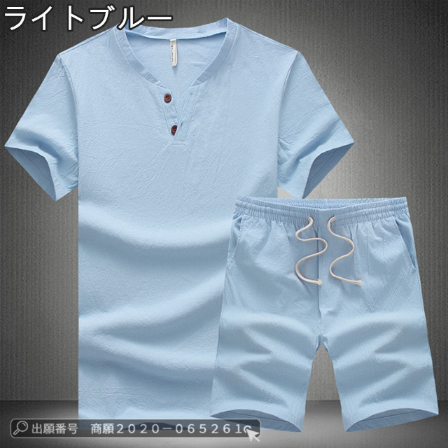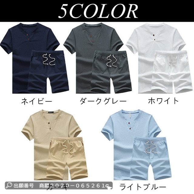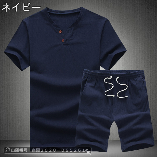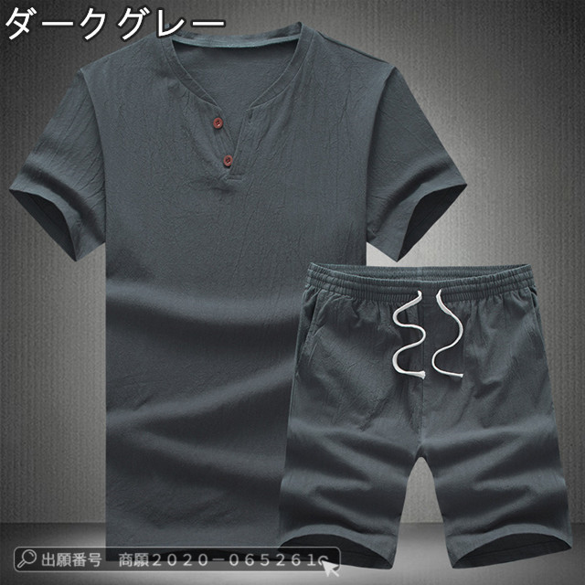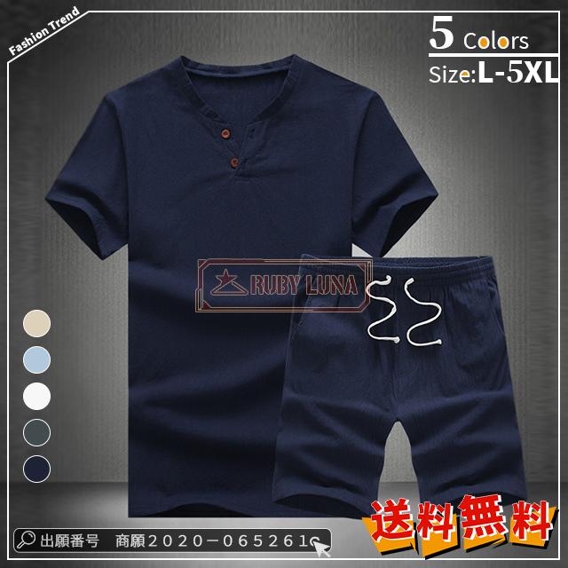 赤字覚悟 送料無料 半袖 上下セット メンズ セットアップ 綿麻 中国風Tシャツ ハーフパンツ 2点セット リネン カジュアル Vネック薄手 夏服 運動着 ルームウェア スウェット 部屋着 ゆったり 涼し ひんやり