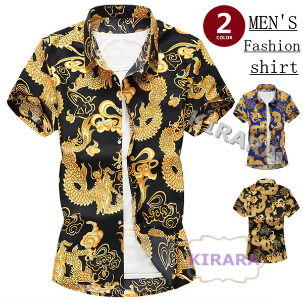 シャツ メンズ 半袖 龍柄 アロハシャツ ハワイシャツ 総柄 夏新作 サマー カジュアルシャツ