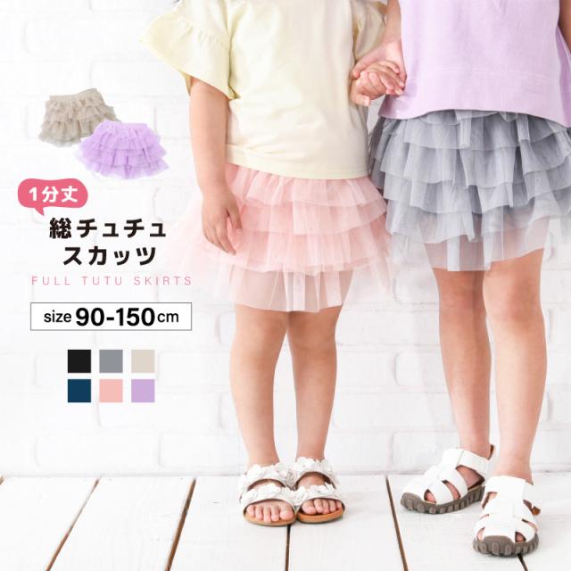 チュチュスカッツ 1分丈 総チュチュ スカッツ 子供服 キッズ ジュニア ベビー リンクコーデ 女の子 ボトムス スカート レギ
