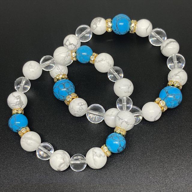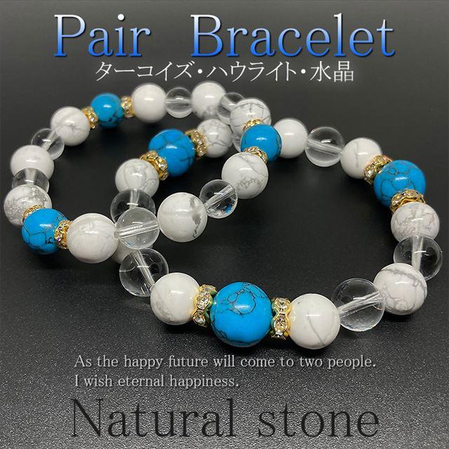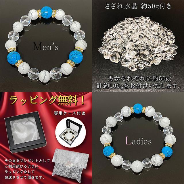 ペアブレスレット 天然石 ターコイズ パワーストーン 誕生日や記念日のプレゼントに人気 サイズ変更無料 さざれ水晶 50g×2個 付 スペシャルセット ラッピング無料 ギフトBOX付 人気2本セット 送料無料 大きいサイズ 変更無料 結婚記念日 男性用 女性用