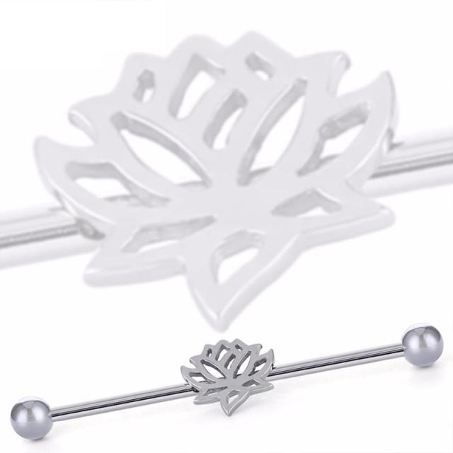 [14G インダストリアル ボディピアス] 蓮華 ボディーピアス 14ゲージ メガバーベル メンズ レディース 人気 ストレートバーベル 長い ロングバーベル サージカルステンレス316L 蓮の花 ハス お釈迦さま フラワー ブッダ レンゲ 綺麗 大人 彼氏 彼女 つなぐ 繋げる