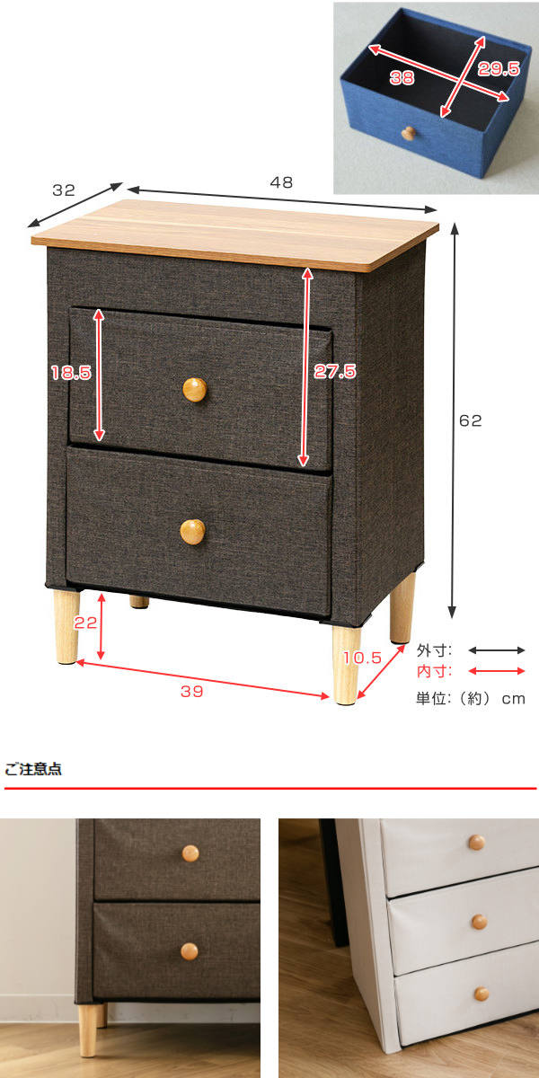 収納ケース ファブリックチェスト 幅48×奥行32×高さ62cm 木天板 2段 ( ファブリック 布 収納チェスト 収納 リビングチェスト 引き出し 脚付き 2段チェスト 木製天板 洋服収納 衣類収納 インテリア ナチュラル おしゃれ )