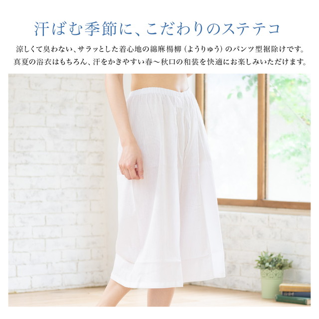 ステテコ レディース 日本製 裾除け 裾よけ パンツ型 女性 着付け 和装 浴衣 着物 夏 抗菌 防臭 綿麻楊柳 真夏の女のステテコ 白 ホワイト M L LL メール便 送料無料