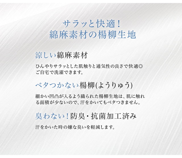 汗を素早く吸収発散するシボの深い楊柳の快適な素材を使用した、真夏におすすめな涼しいステテコです。