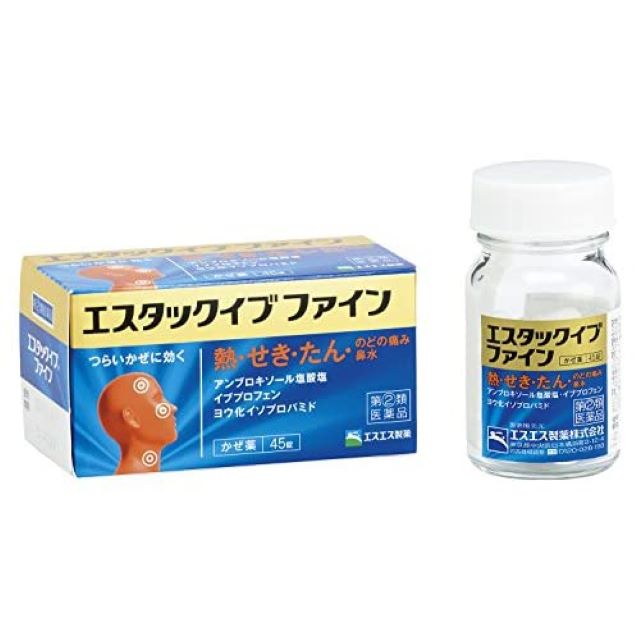 商品名 指定第2類医薬品 エスタックイブファイン45錠 セルフメディケーション税制対象商品 エスエス製薬 容量 45錠 JANコード 4987300055410 メーカー エスエス製薬 カテゴリー 医療・介護・医薬品>医薬品>風邪薬>風邪薬【第一・二類医薬品(指定第二医薬品含む)】 効果・効能 かぜの諸症状(発熱、悪寒、せき、たん、のどの痛み、鼻水、鼻づまり、くしゃみ、頭痛、関節の痛み、筋肉の痛み)の緩和 用法・用量 次の1回量を1日3回、食後なるべく30分以内に水又はぬるま湯で服用してください。