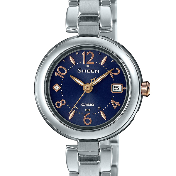カシオ シーン チタンモデル SHW-7100TD-2AJF レディース 腕時計 電波ソーラー メタルバンド ネイビー