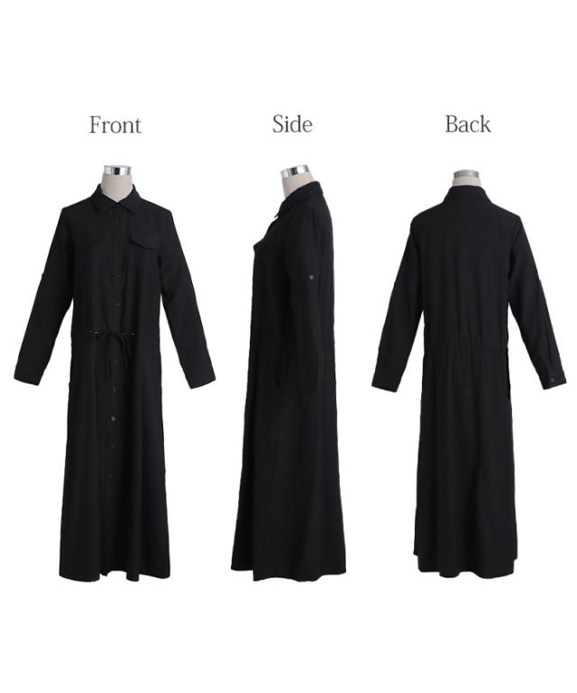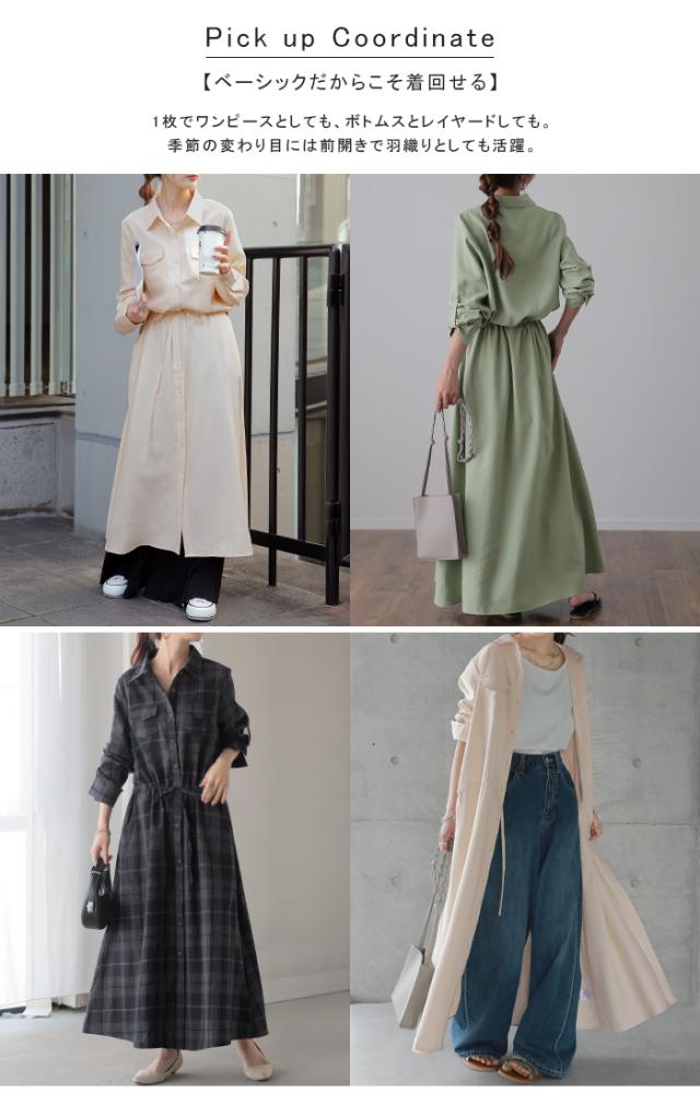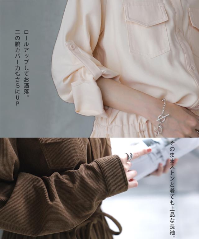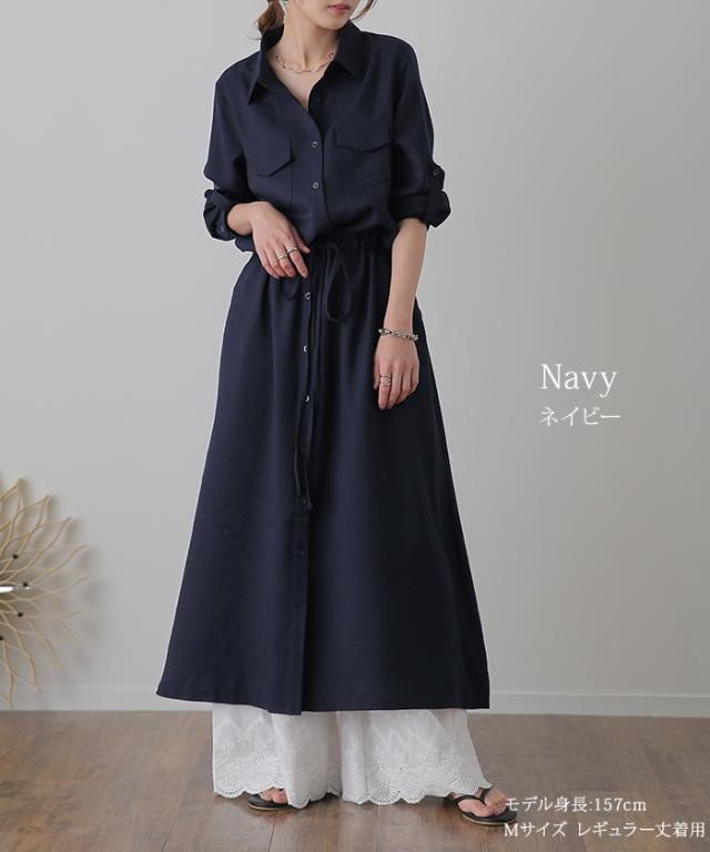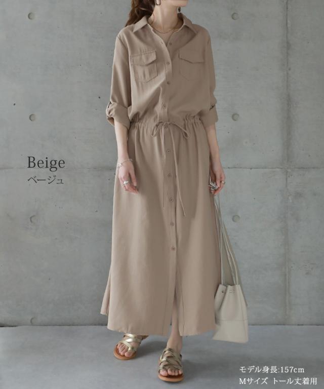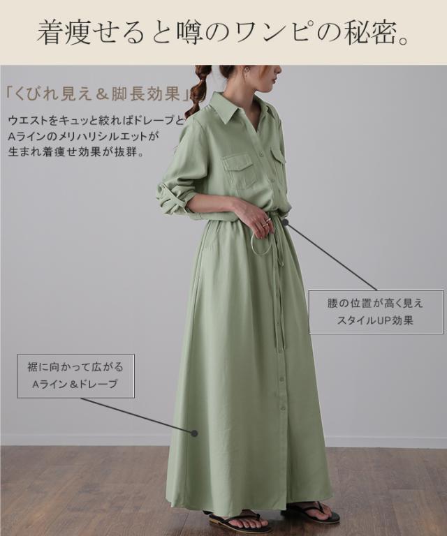 「理想の着痩せ」まくり袖で二の腕カバー。 ワンピース ロングワンピース シャツワンピース シャツ ブラウス ワンピ マキシ レディース 長袖 羽織 大きいサイズ 黒 ベージュ きれいめ 冬 秋 秋新作