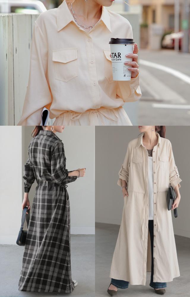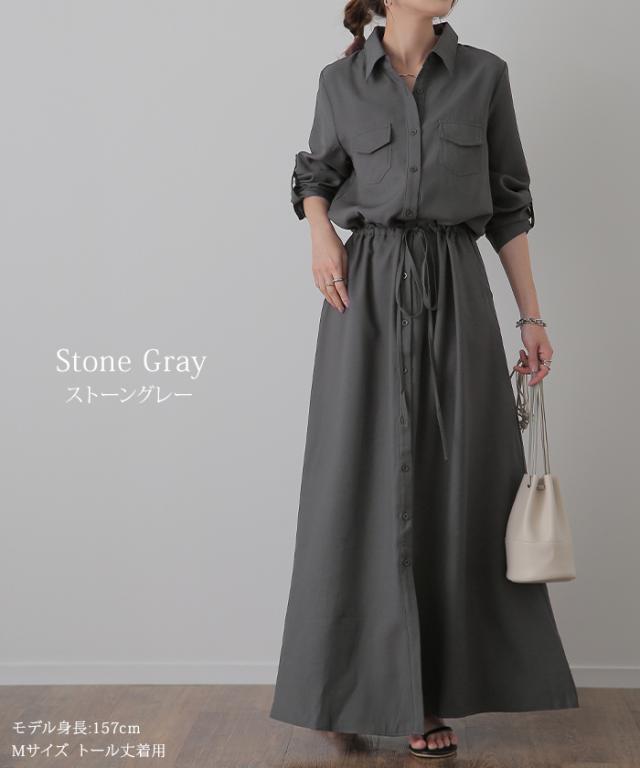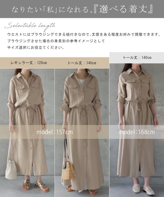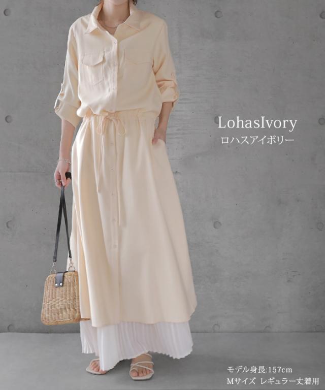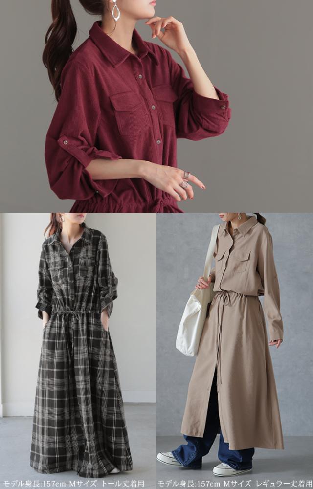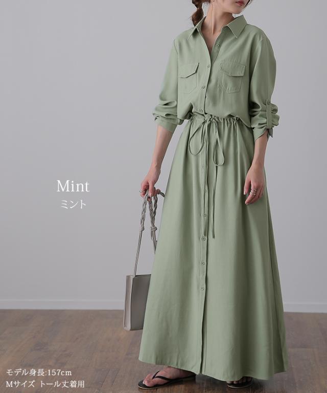 「理想の着痩せ」まくり袖で二の腕カバー。 ワンピース ロングワンピース シャツワンピース シャツ ブラウス ワンピ マキシ レディース 長袖 羽織 大きいサイズ 黒 ベージュ きれいめ 冬 秋 秋新作
