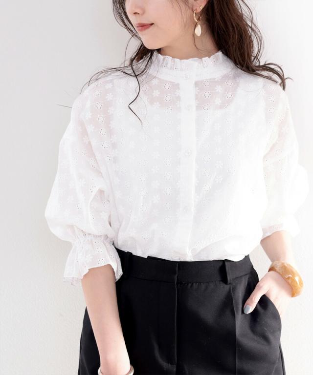 好感度をアップしてくれる花柄刺繍ブラウス。