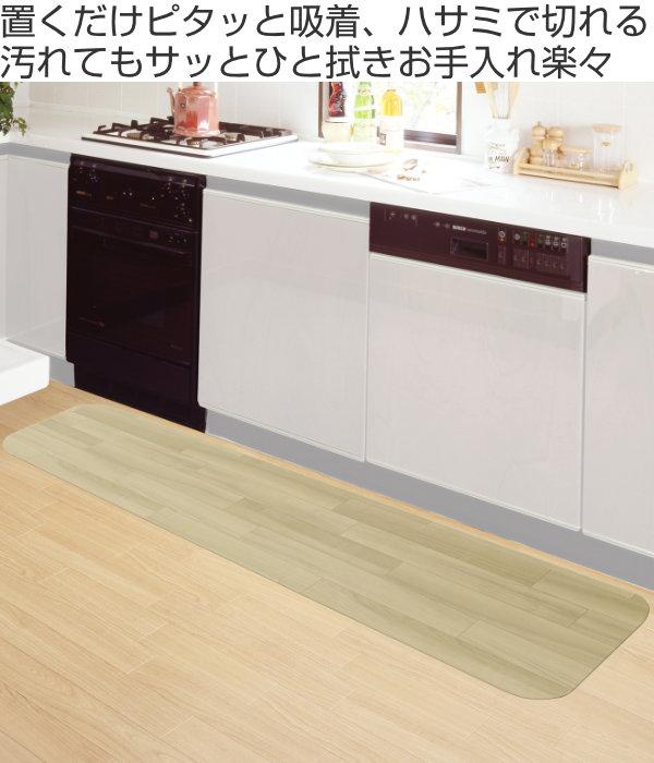 キッチンマット 180cm 吸着キッチンマット 木目 拭ける 吸着 滑らない 45cm×180cm ( 吸着マット キッチン マット キッチン用マット フリーカット 台所マット 拭けるキッチンマット 洗濯不要 ズレない 抗菌 防水 日本製 おしゃれ )