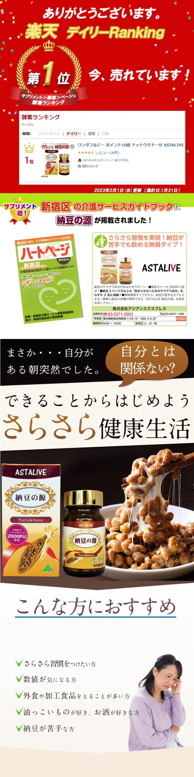 送料無料 日本ナットウキナーゼ協会認定 ナットウキナーゼ 【2個セット】ASTALIVE アスタライブ 納豆の源 60粒 30日分×2個 | 納豆キナーゼ 納豆菌 サプリメント サプリ 国産 2000FU