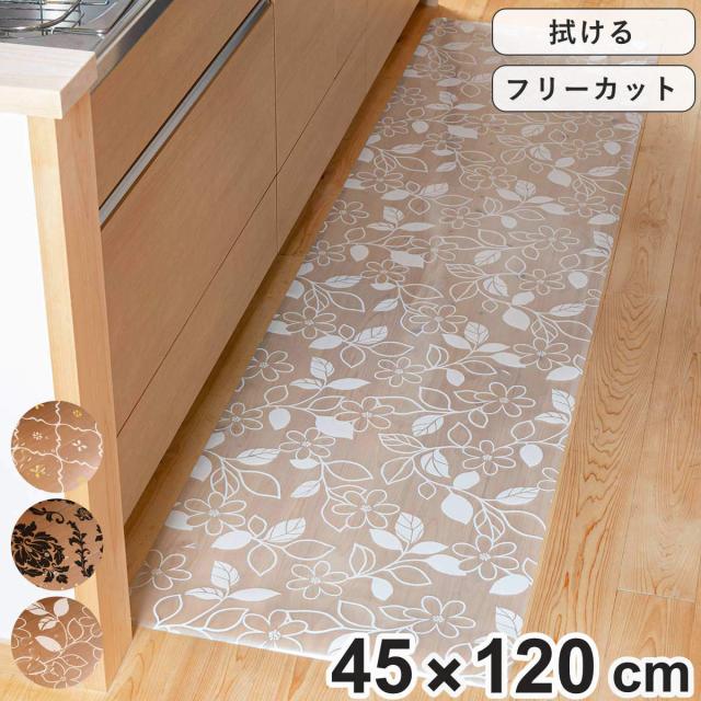 キッチンマット 拭ける 45×120cm 柄物 クリア ( 45cm 120cm クリアキッチンマット キッチン マット キッチン用マット 台所マット 拭けるキッチンマット 日本製 クリアマット 洗濯不要 ズレない 傷防止 防水 花柄 透明 )