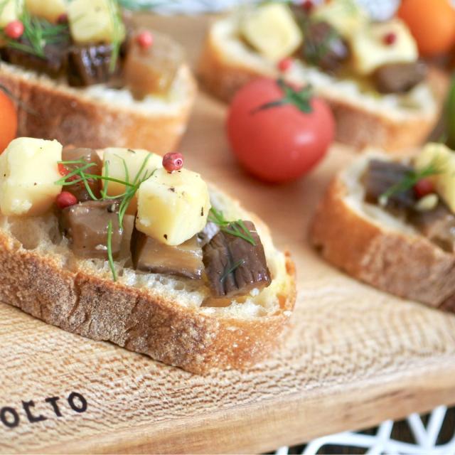 秋田が誇る「いぶりがっこ」を、定番の組み合わせであるチーズとともにオイル漬けにしました。秋田の魚醤「しょっつる」と塩麹の旨味を加え、他にはない味わいに仕上がっています!