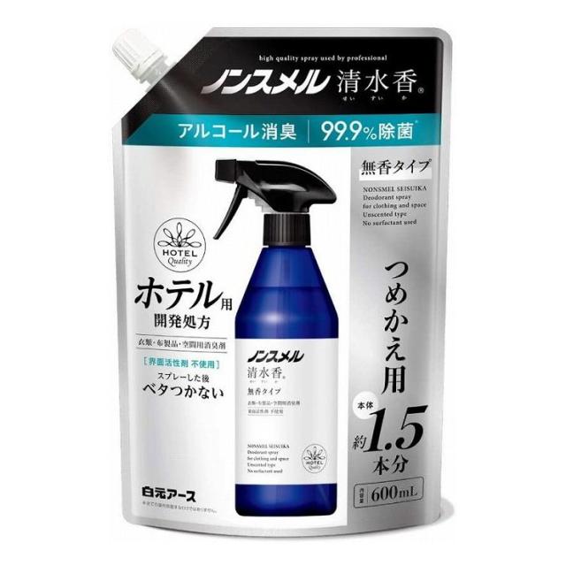 3個セット 白元アース ノンスメル清水香 無香 詰替えパウチ600mL(代引不可)【送料無料】