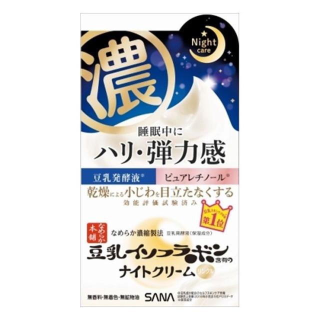 豆乳のリンクルナイトクリーム。ピュアレチノール※1を配合!濃厚クリームがじっくり浸透※2するおやすみパック処方でエイジングケア※3。べたつかないから、寝返りをしても気になりません。乾燥による小じわを目立たなくします(効能評価試験済み)。 ※1:保湿成分 ※2:角層まで ※3:年齢に応じたお肌のお手入れ