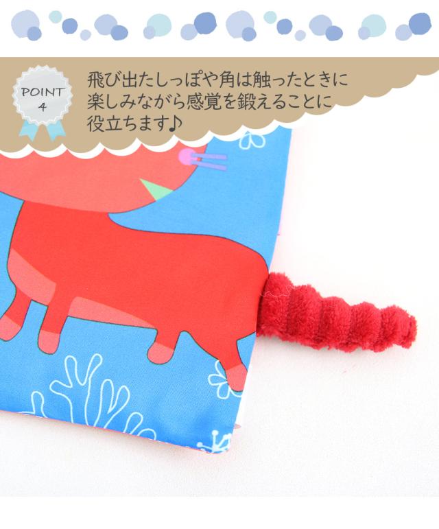 飛び出たしっぽや角は、触ったときに楽しみながら感覚を鍛えることに役立ちます。