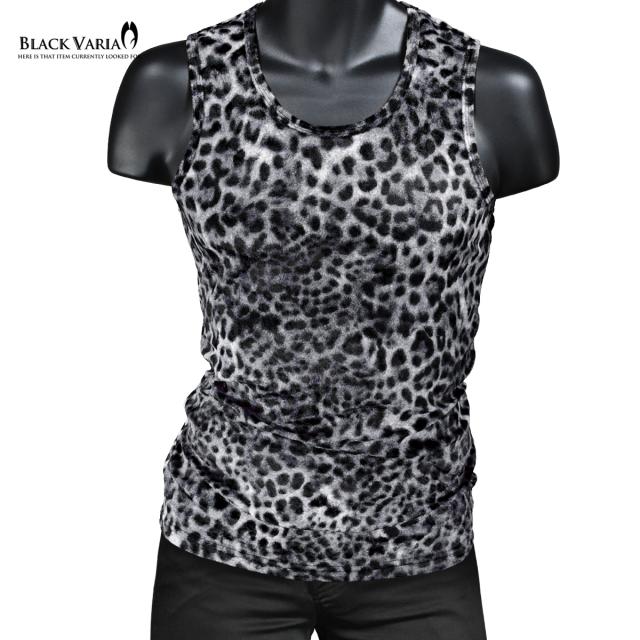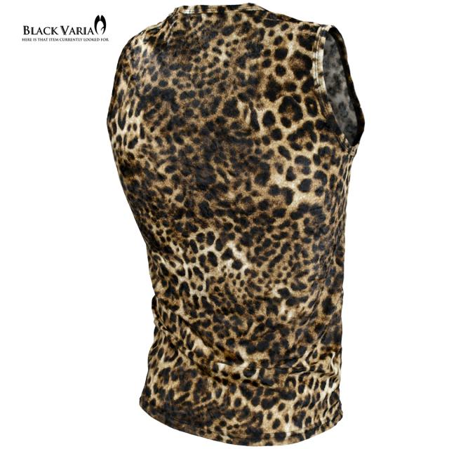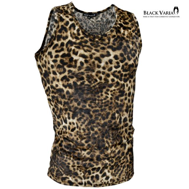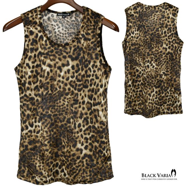 メール便可/1枚まで タンクトップ ヒョウ 豹柄 メンズ レオパード 日本製 アニマル ストレッチ 細身 mens(ダークブラウン茶) 213101