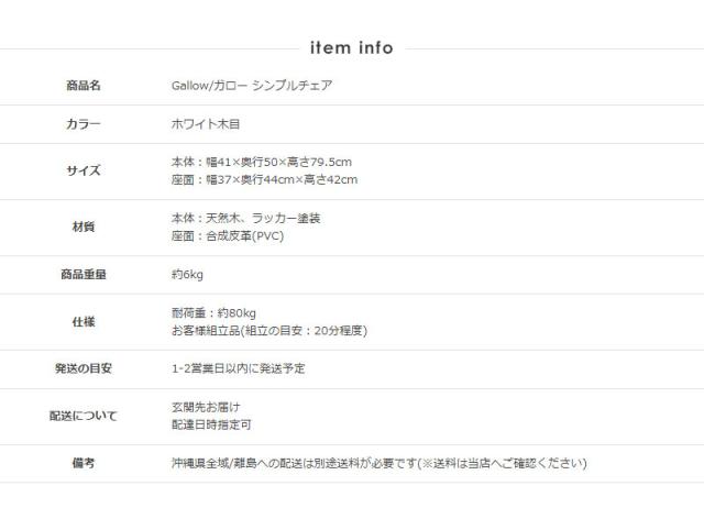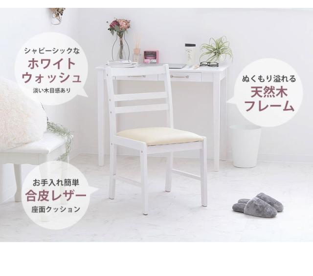 【値下げ】チェア 木製 ホワイト 椅子 座面合皮レザー フレンチカントリー 木目 シンプル かわいい 姫系 食卓 読書 勉強 ガロー 新生活