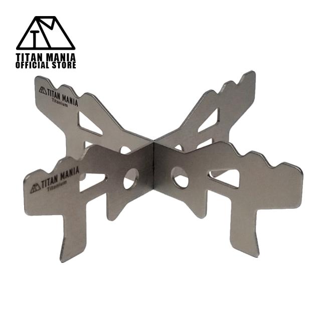 TITAN MANIA チタンマニア 五徳 C 純チタン ソロキャンプ アルコールストーブ用 超軽量 頑丈 十字 チタン製 クロススタンド ポータブル バーベキュー アウトドア キャンプ用品 保管用ワイヤー付き 収納袋付き