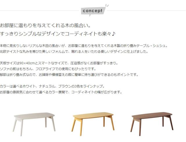 | 脚部折りたたみ式 カラー:ホワイト/ナチュラル/ブラウン |