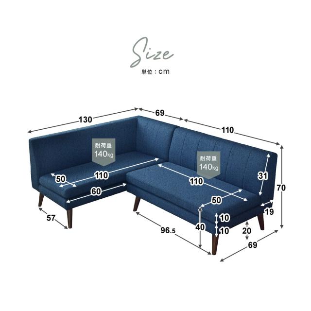 コーナーソファ:幅130×奥行69×高さ70×座面高40(cm)