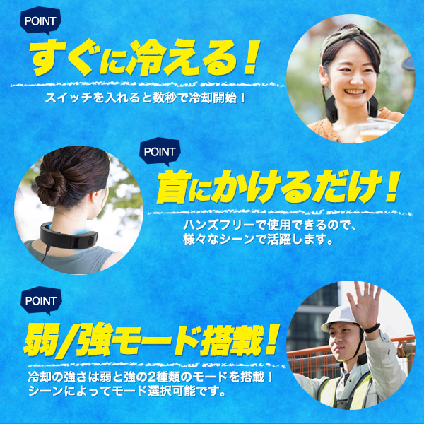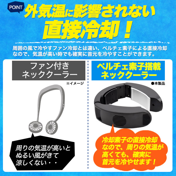 ペルチェ素子で首元を急速冷却!身体全体を冷やす!