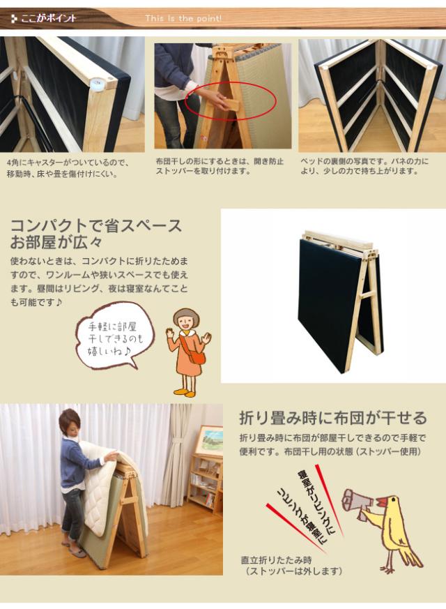 中居木工 日本製 折りたたみベッド スプリング付 炭入り 畳マット すのこ ヒノキ 国産 完成品 消臭 湿気対策 キャスター付き 檜(代引不可