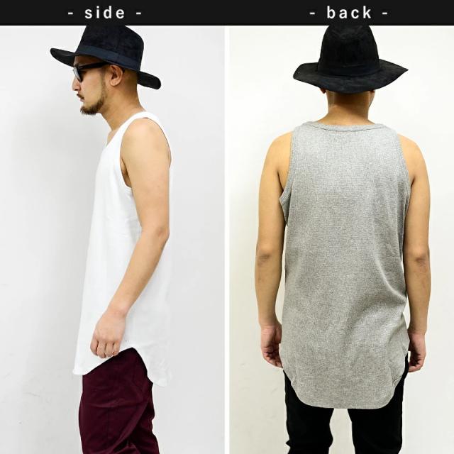 無地/サーマル生地/ワッフル生地/ロング丈/ストレッチ/ノースリーブ/