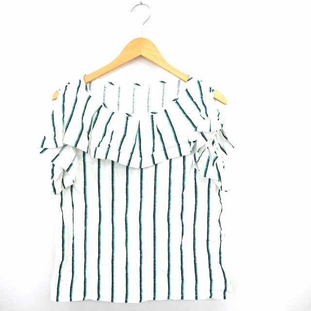 【中古】トッコ TOCCO シャツ ブラウス ストライプ 丸首 フレア 袖なし ノースリーブ コットン 綿 M L アイボリー