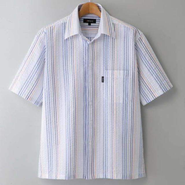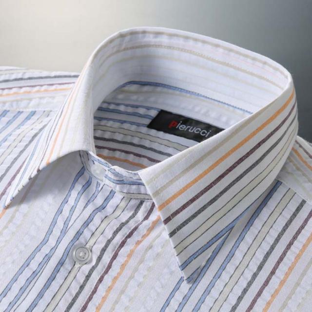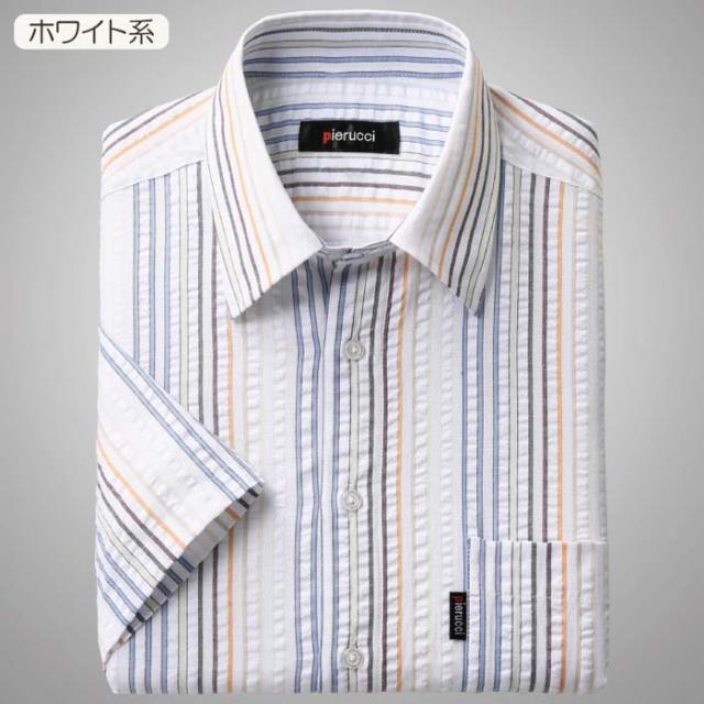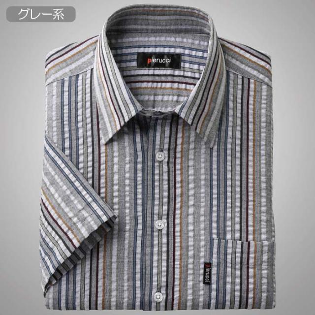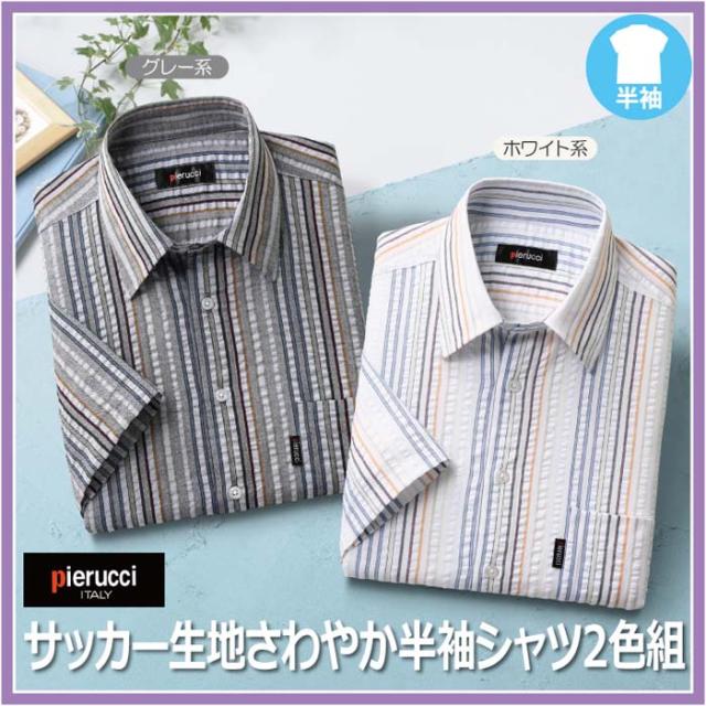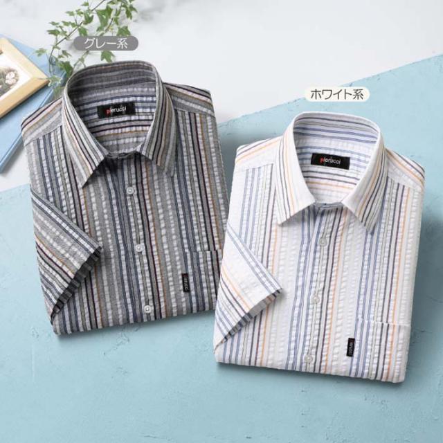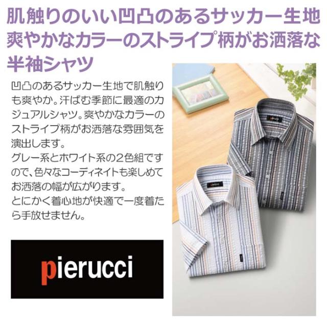 Pierucci/ピエルッチ サッカー生地さわやか半袖シャツ 2色組(GV-043) ストライプ 縦縞 M L LL【送料無料】