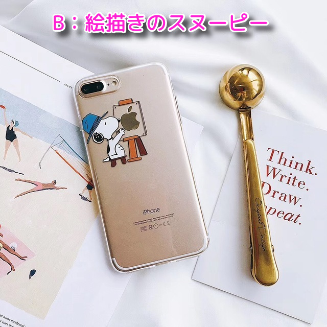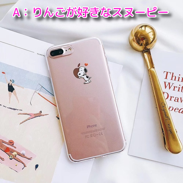 スヌーピーとiPhone背面のAppleマークがおしゃれでかわいいiPhoneケースです。