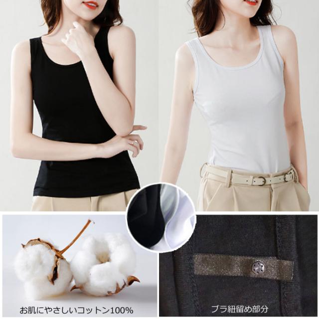 ブラ紐隠し タンクトップ インナー コットン 綿 100% トップス レディース 抗菌 消臭 ドライ 袖なし ノースリーブ 肌着 白 黒 大きいサイズ M L LL