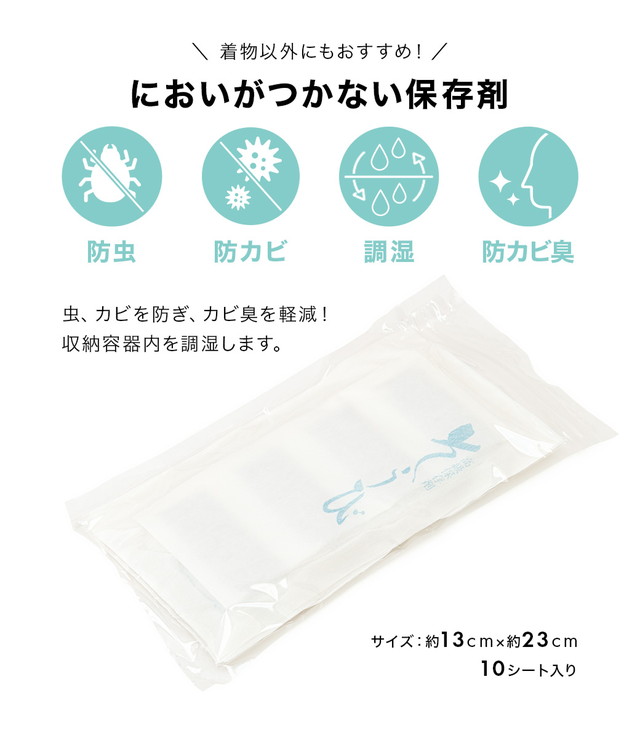 大切な着物や帯を湿気、カビ、害虫から守る、シート状の便利なせんい製品防虫剤です。