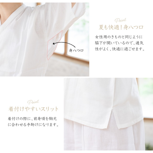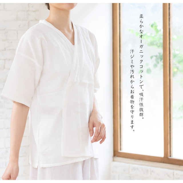肌着 レディース 着物 オーガニックコットン ダブルガーゼ 肌襦袢 筒袖 長襦袢 白 ホワイト 和装下着 補正 着付け小物 女性 和装小物 ユナ・イト メール便 送料無料