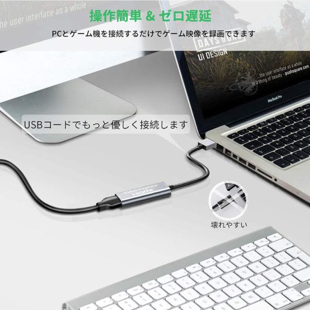 【その他の特徴】・Windows、Mac、AndroidのOSに対応。・VLC media player、OBS Studio、XSplitなどのライブ映像録画アプリケーションが使用できます。・電源不要、ドライバインストール不要、持ち運びに便利な小型設計。