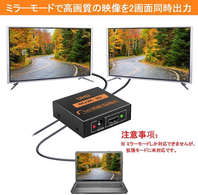 HDMI 分配器 スプリッター 1入力 2出力 2画面 同時出力 4K*2K @30Hz 3D PC Xbox PS4 任天堂スイッチ Fire TV Stick プロジェクター 対応