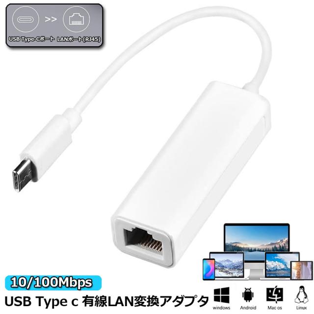 USB Type-C to Lan 変換アダプター 10/100Mbps rj45 イーサネット LAN有線ネットワーク コンバータ アルPC ノートパソコン タブレット Windows Android MacBook/pro ChromeBook Dell XPS対応
