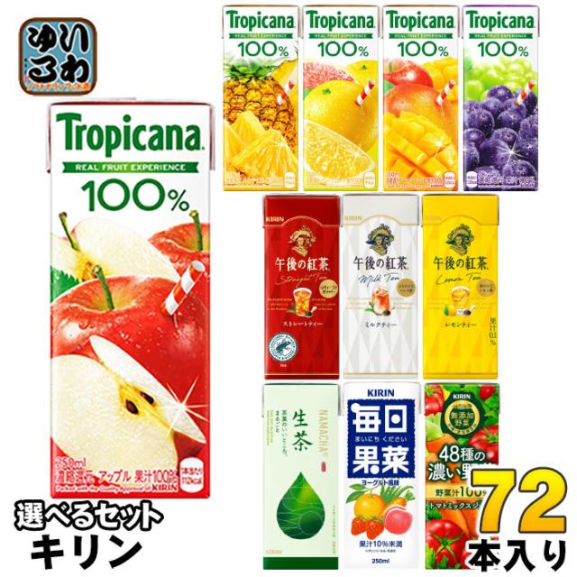 キリン トロピカーナ 午後の紅茶 生茶 他 250ml 200ml 紙パック 選べる 72本 (24本×3) 季節限定 果汁 野菜ジュース お茶 午後ティー 生茶 フルーツジュース お茶 紅茶 48種の濃い野菜