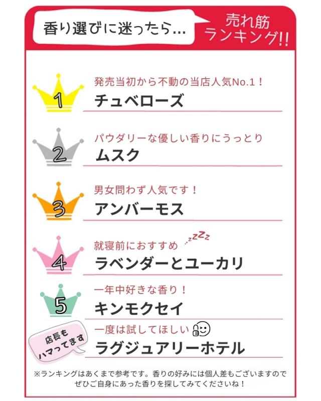 その場のシーンに合わせて香りをチョイスするものオススメです。