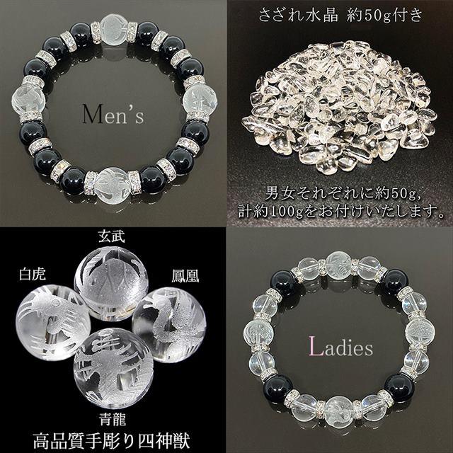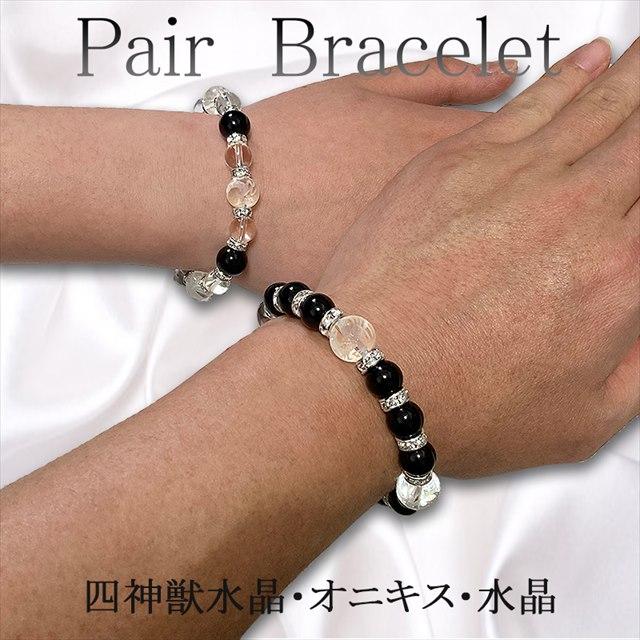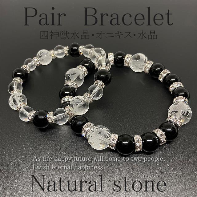 ペアブレスレット 天然石 パワーストーン 2本セット 専用ボックス&ラッピング付き 誕生日プレゼント 記念日の贈り物に大人気 メンズ レディース セット 最短当日発送 送料無料 男性用 女性用 数珠 四神獣 水晶 オニキス 大きいサイズ 小さい サイズ変更無料