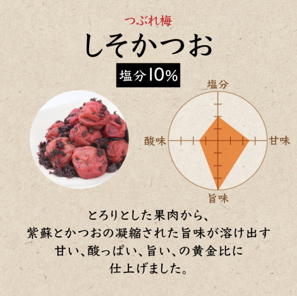 とろりとした果肉から、しそとかつおの凝縮された旨味が溶け出す甘い、酸っぱい、旨いの黄金比に仕上げました。