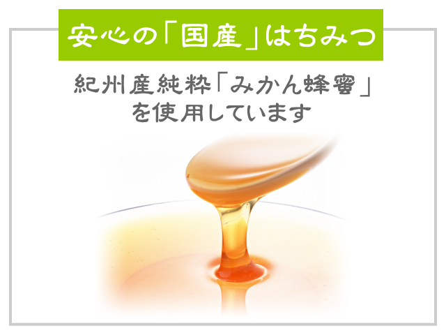 ※当店のはちみつは、紀州の山で育んだみかんの花から収穫した「はちみつ」を使用しています。