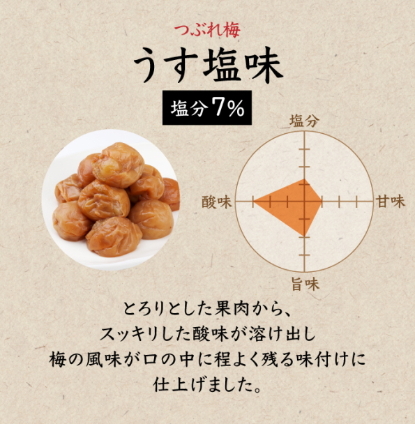 紀州産南高梅「つぶれ梅 うす塩味 塩分約7%」を送料無料でお届けします!