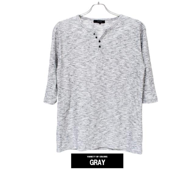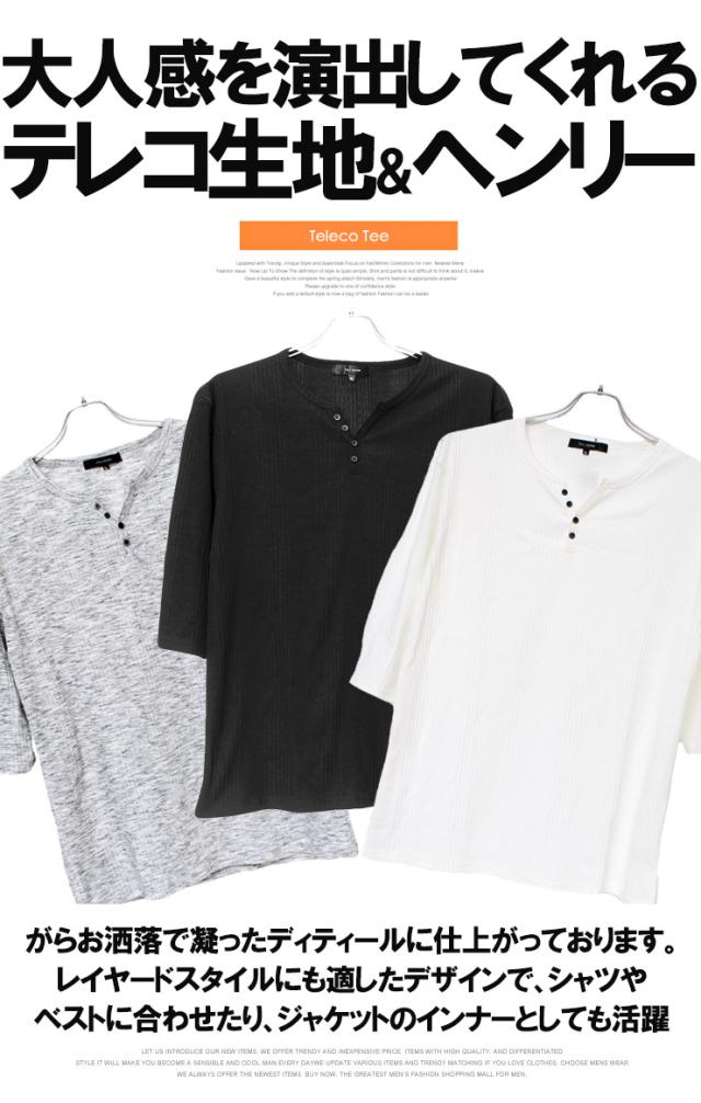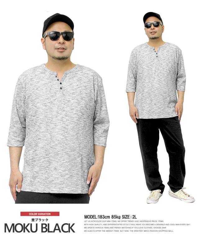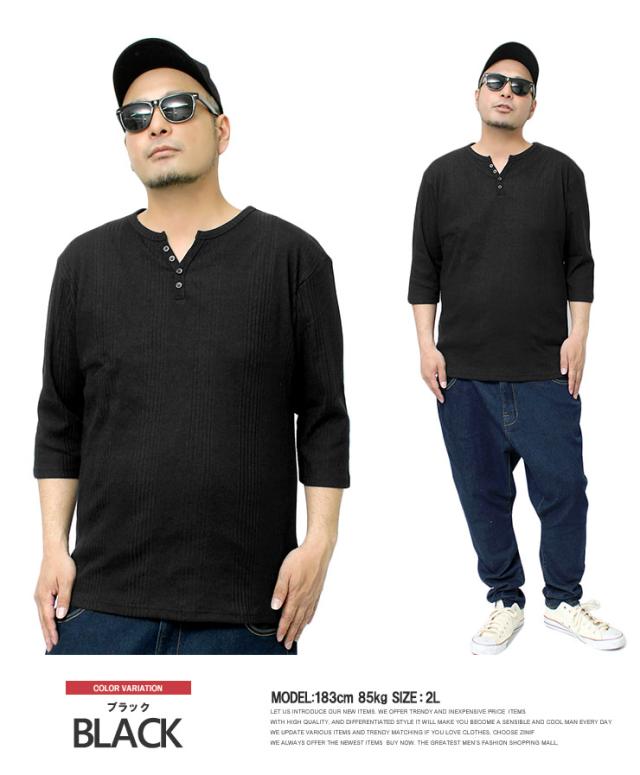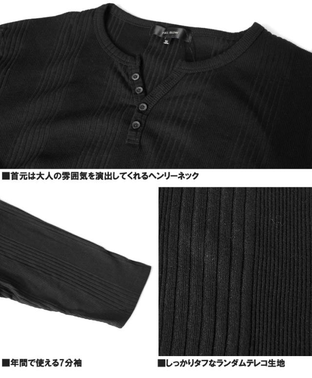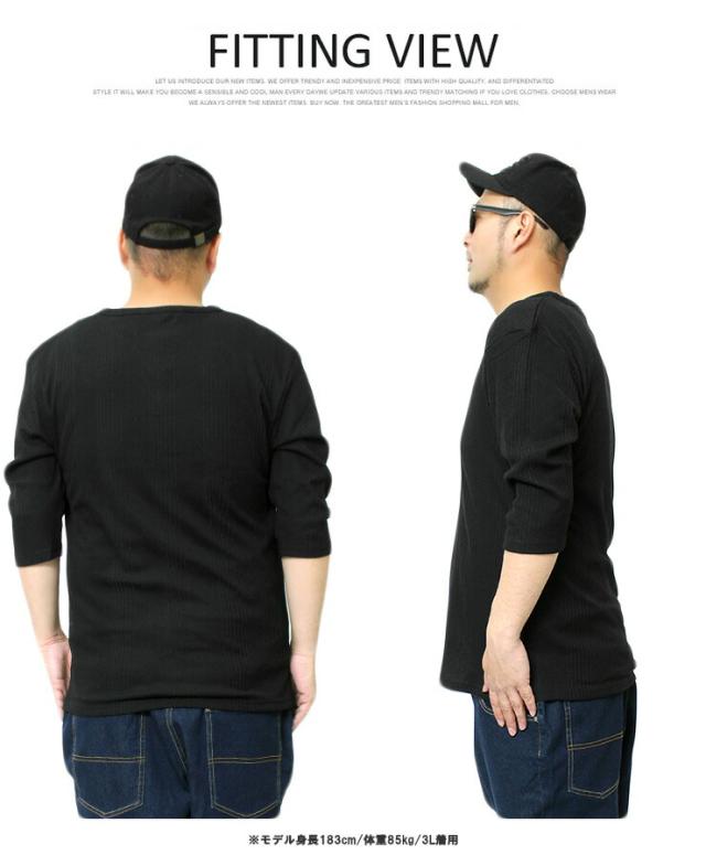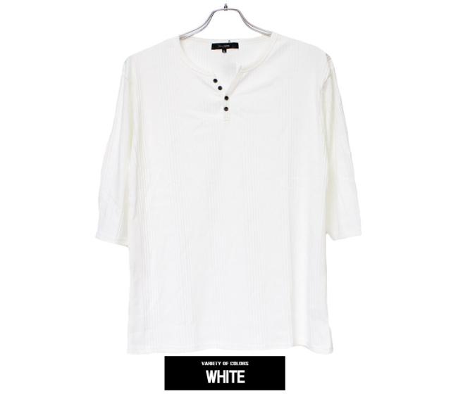 【メール便で送料無料】 7分袖 Tシャツ メンズ 大きいサイズ ヘンリーネック 無地 ランダム テレコ素材 ストレッチ カットソー ヘンリーネックTシャツ 七分袖 半端袖 トップス インナー リブ 伸縮 ワッフル 白 黒 きれいめ ワークマン プラス