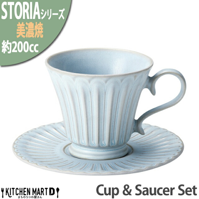 ストーリア リストーン 200cc コーヒーカップ&ソーサーセット 美濃焼 シャビーブルー 12×9×8cm 水色 ライトブルー 日本製 取皿 小皿 カップソーサー 食器 ティータイム しのぎ レリーフ おしゃれ かわいい かっこいい 陶器 光洋陶器 業務用 食洗器対応 ラッピング不可