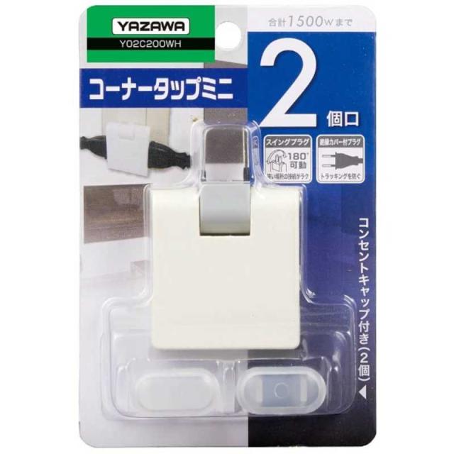 ヤザワ 耐トラ付コーナー 電源タップ タップ ミニ ホワイト Y02C200WH 直挿し 2個口 スイッチ無 Y02C200WH