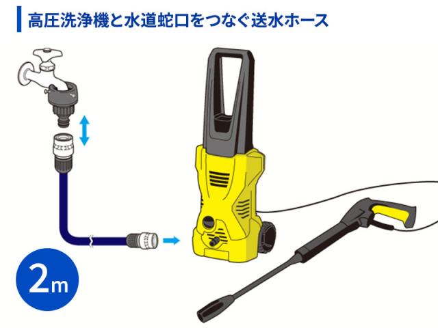 高圧洗浄機と水道蛇口をつなぐ、2mの送水用ホース。