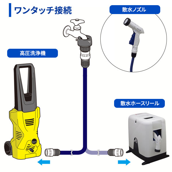 ワンタッチ接続両端にはワンタッチで取り外しできるコネクター付き。